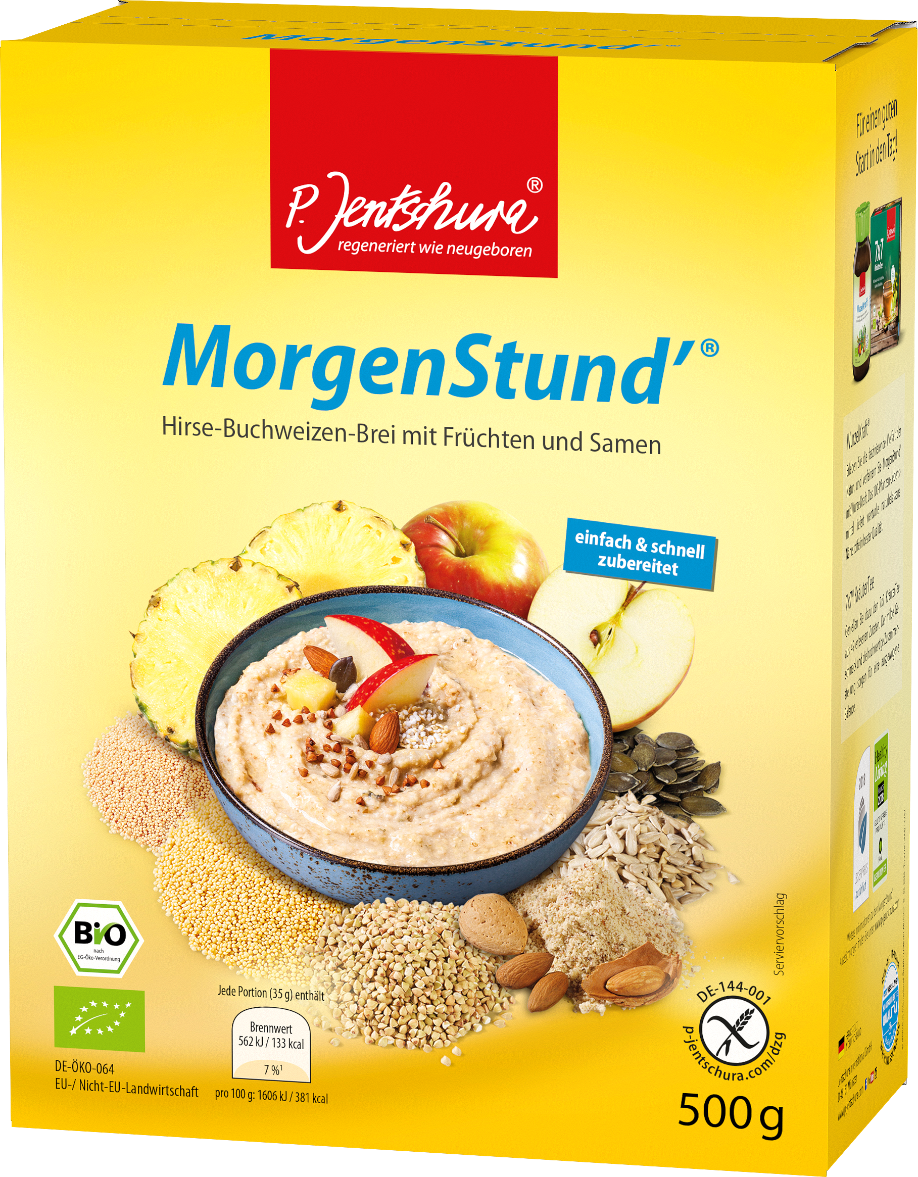 MorgenStund' ist das perfekte, vollwertige Frühstückserlebnis für die ganze Familie. Der basische Brei liefert Ihnen wertvolle Nährstoffe und Vitamine, punktet durch hochwertiges, pflanzliches Eiweiß aus Buchweizen und hält mit komplexen Kohlenhydraten trotz weniger Kalorien lange satt. Kurzum – die ideale Basis für körperliche und geistige Leistungsfähigkeit.
